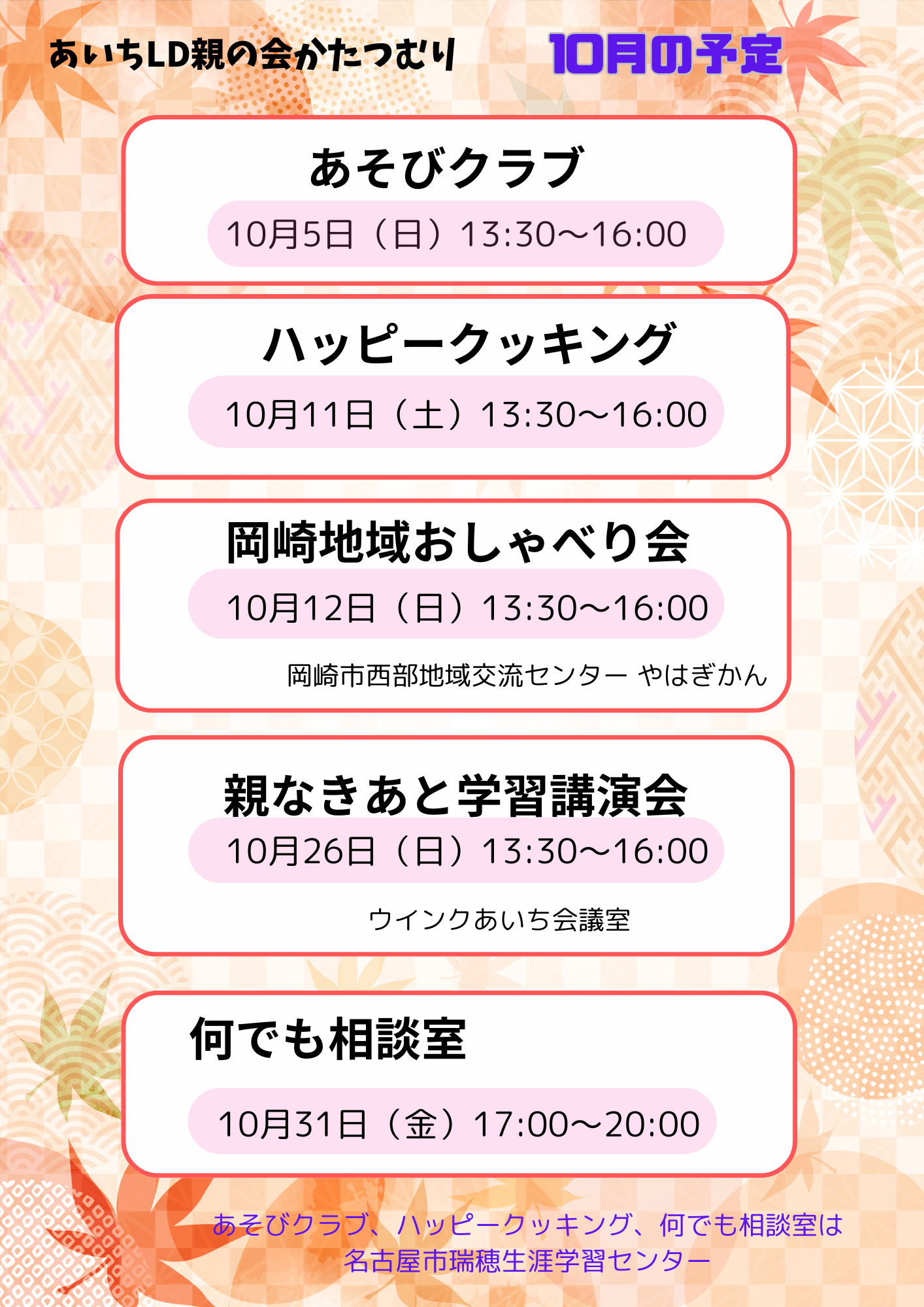 ◎ あいちLD親の会かたつむり からのお知らせ・案内 Announce